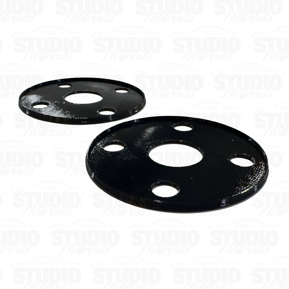 Hood pin plate gaskets for a flush-mounted look and a clean edge. These gaskets offer a more finished look for any hood pin plates that are 2 5/8" (2.625"-2.635") in diameter.